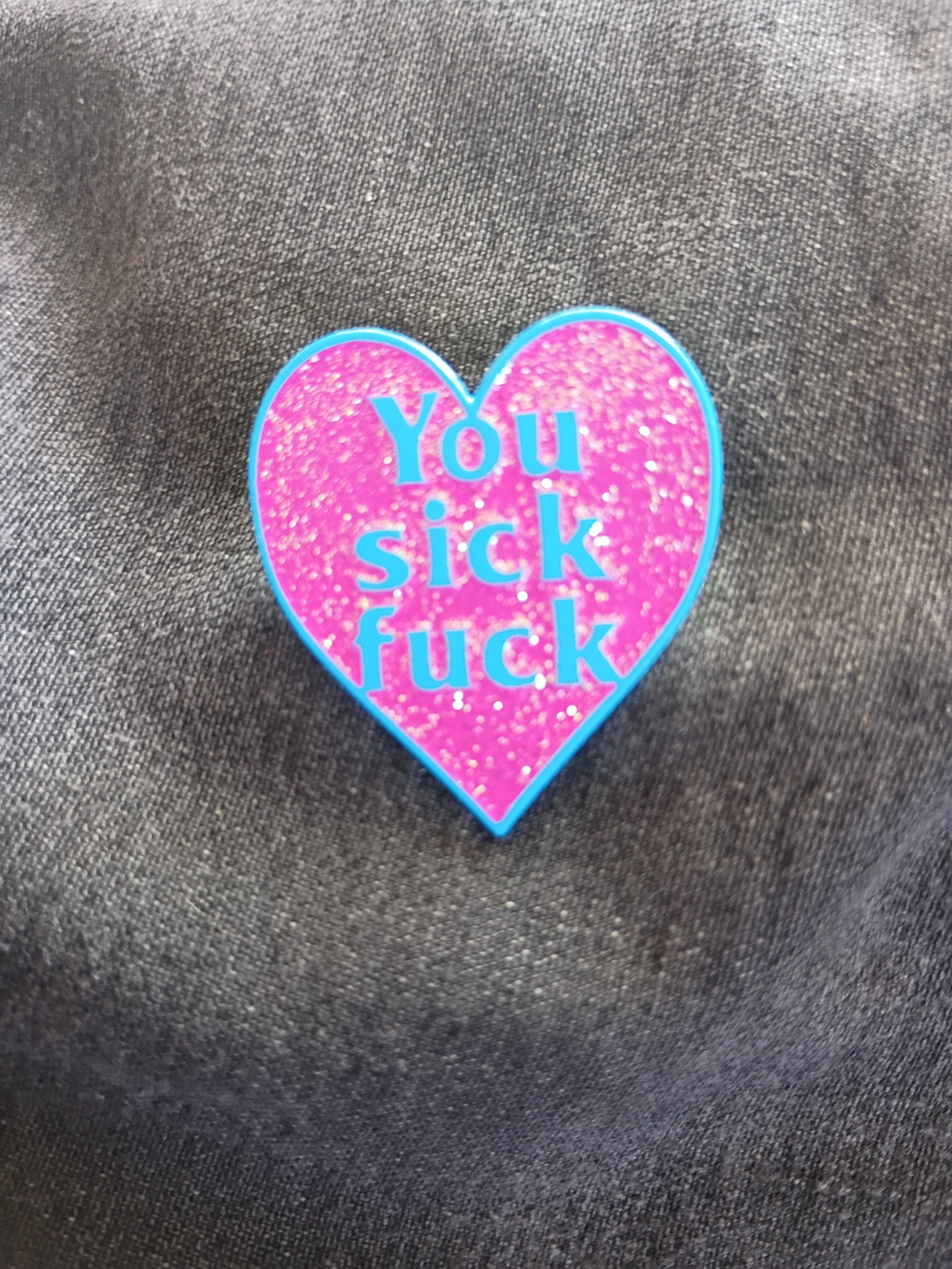 You sick fuck heart enamel pin (bubblegum sparkle)